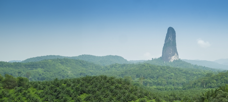 The islands' volcanic origin is evident in the beautifully striking rock and coral formations, rainforests, and sandy beaches. Ôbo Natural Park, a biodiverse jungle preserve, covers much of São Tomé and is easily distinguished by the iconic ‘Pico Cão Grande’, a magnificent volcanic rock that stands like a rocket in the center of the island.